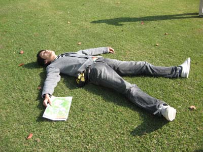 事業部全体の若手がだいたいそろってあれやこれやわいわい。 他の部や課の人間とはあまり付き合いがないから、 結構新鮮でおもしろい。 自由時間が結構あったので、 芝生でごろ寝したり、バスケして遊んだり、と、 それなりに出張をエンジョイ。 こんなのもたまにはよいなぁ。 |