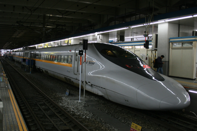 ![]() 車内アナウンスの前にこの曲が流れマス。 博多駅にて。 |