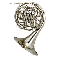 ホルンは中低音域(?!)を奏でる楽器です。かっこしてフレンチと書いたのは、イングリッシュホルンという楽器もあり、こっちは木管楽器の仲間だからです。管弦楽や吹奏楽で用いられ、深みのある音色を出します。吹き方しだいではぞうさんのほえる(?!)ような音もでます。数十人のホルンだけで構成された演奏団体もあり、奥の深い楽器です。