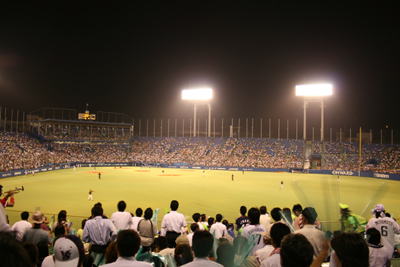 オレは熱狂的なヤクルトスワローズのファン。 小学校高学年の時にはすでにファンだった気がするから、 実に十数年来ファンをやっていることになる。 車やドラムなんかよりはるかに長い付き合いなわけ。 ところが不肖ひさたろ、実は本拠地の神宮球場へ行ったことがなかった。 ずーっと行きたい行きたいと思っていたのだが、なかなか機会がない。 就職したら通いつめる計画も、いきなりの転勤でおじゃんだし。 で、本日。 苦節十数年。 よーやく念願の神宮デビュー、果たしちゃいました(^。^) ヤクルトvs巨人。 今回はいつしかのナゴヤドームと違って、周りもみんなヤクルトファン! 試合には負けてしまったけど、 大声で応援したり、東京音頭(ヤクルトが点を取るとみんなで歌う)を歌ったりと、 そりゃあもう大満足。 出張とうまく日程があったらまたいーこぉっと。 ----- 2007/08/06 22:20 あちぃ。 in居城 →掲示板でコメントする |