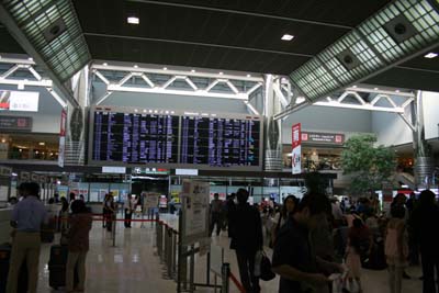 いよいよ旅立ちの時。 来るときは機中泊だったのだが、 復路はその日のうちに中部空港に着く行程。 よってメルボルン空港始発の6:00のに乗らなければならない。 空港までの移動時間とカンタス航空の手続きののんびりさを考え、 ホテルを午前4時前(日本時間だと3時)に出発。 そのかいあって早朝からやたらめったら混んでいたカウンタでのチェックイン手続きも余裕で終了。 早々に搭乗口付近へと移動し、のんびりと読書なんかしていたわけです。 ほどなくして搭乗開始になったので、 少し時間をおいて混雑が少しひいてから搭乗口に向かった。 チケットを係員に渡し、改札機みたいな機械でチェック。 すると、 ピローッ!! チケットエラーです。 どうもWブッキングしていたよう。 搭乗手続きもすでに最終案内に突入しておりあせるあせる。 サービスカウンターで新しい席を手配してもらうも、 このカウンターのおばちゃんがまた、 電話で談笑なんかしながらのんびりと仕事してくれるのよ。 もうあせるやらいらっとするやら^^; ちなみに今日の旅程。 めちゃめちゃタイトな上に1本でも乗り遅れると今日中に愛知に帰れなくなる。 それはもう必死なわけ。 なんとかギリでメルボルン→シドニー便に乗れるも、 今度はシドニーで問題発生。 国内線ターミナルから国際線ターミナルへ行くバスがなかなか来ない。 かなり遅れてようやく国際線ターミナルに着くも、 JALのカウンタが見つからない。 あせるあせるあせる。 あまりのあせりように、 JALのカウンタに着いた時、係員にリラックスしろと笑われる始末。 その後も、わずかな時間でお土産買いに行ったところ、 予想以上にレジが混み、危うく乗り遅れそうになるなど、 ホントにまぁトラブル尽くし。 成田に着いたら着いたで、 次に乗る成田→中部便は国内線だから液体物は持ち込めない決まりだといわれ、 苦労して買った免税品のオーストラリアワインが危うく捨てられそうに。 どうしても!!、と言ったら、 成田でいったん入国手続きをし、 ワインをJALのカウンタで貨物として預け、 成田を再出国という形で入管手続きした上で中部へ向かい、 中部で再入国するという非常に面倒なことに。 成田ではただでさえ乗り換え時間に余裕がなかったのに、 この面倒な手続きのせいで時間に追われまくり。 も〜イヤ!!!! そんなこんなでトラブル尽くしで終始時間に追われた帰国ドタバタ旅行でありました。 しばらくは飛行機はよい。 ----- 2008/06/29 16:15 のんびり inおれんち →掲示板でコメントする |